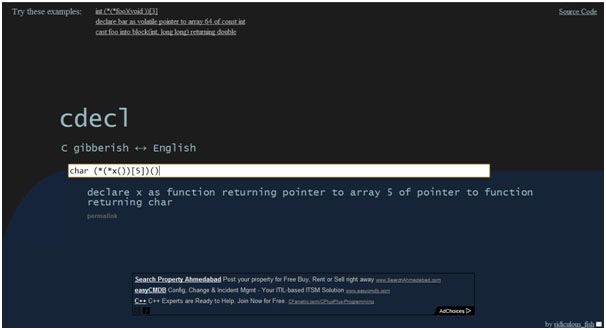 The new, AJAX-powered version of the “C gibberish ↔ English” translation tool cdecl.