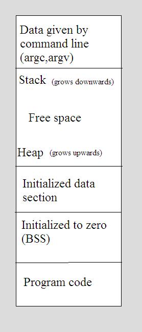 • Uninitialized data segment (initialized to zero data segment – BSS [Block Start with Symbol])